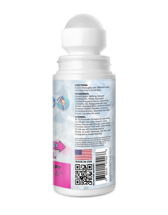 Hemp Extract 1500mg, Natural Menthol 3.9%, Water, Isopropyl Alcohol, Propylene Glycol, Glycerine, Carbomer, Ilex Paraguariensis Leaf Extract, Hydrated Silica, Aminomethyl Propanol, Methyl Paraben, Uncaria, Tomentosa Extract, Boswelia Serrata Extract, Camphor for scent.